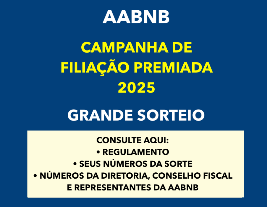 Emissão dos “números da sorte” A AABNB realizou no dia 07 de outubro, em sua sede, a emissão dos “números da sorte” referentes à Campanha de Filiação Premiada 2025, uma promoção de caráter cultural com o objetivo de angariar novos sócios e de fidelizar os atuais integrantes do seu Corpo Social. O evento contou com […]