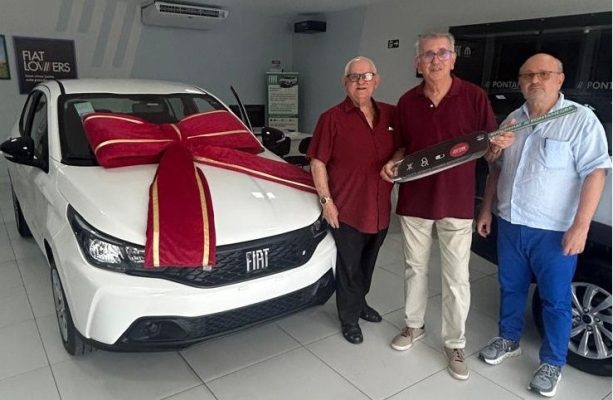 Contemplado com um carro Zero KM, Oscar Bastos visitou as concessionárias da Marca Fiat em Natal-RN, acompanhado pelo presidente da AABNB, Miguel Nóbrega Neto e do diretor administrativo da Associação, Genival Vila Nova.